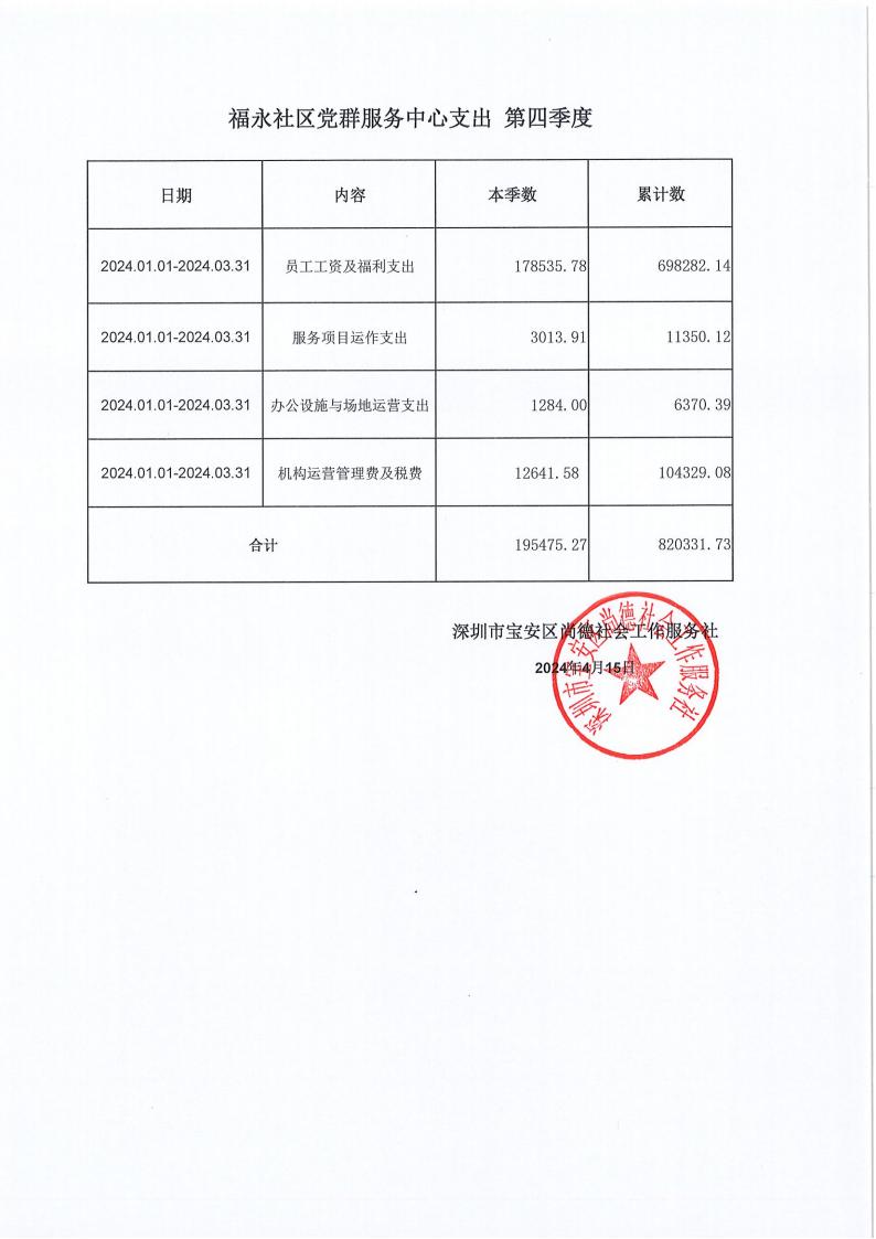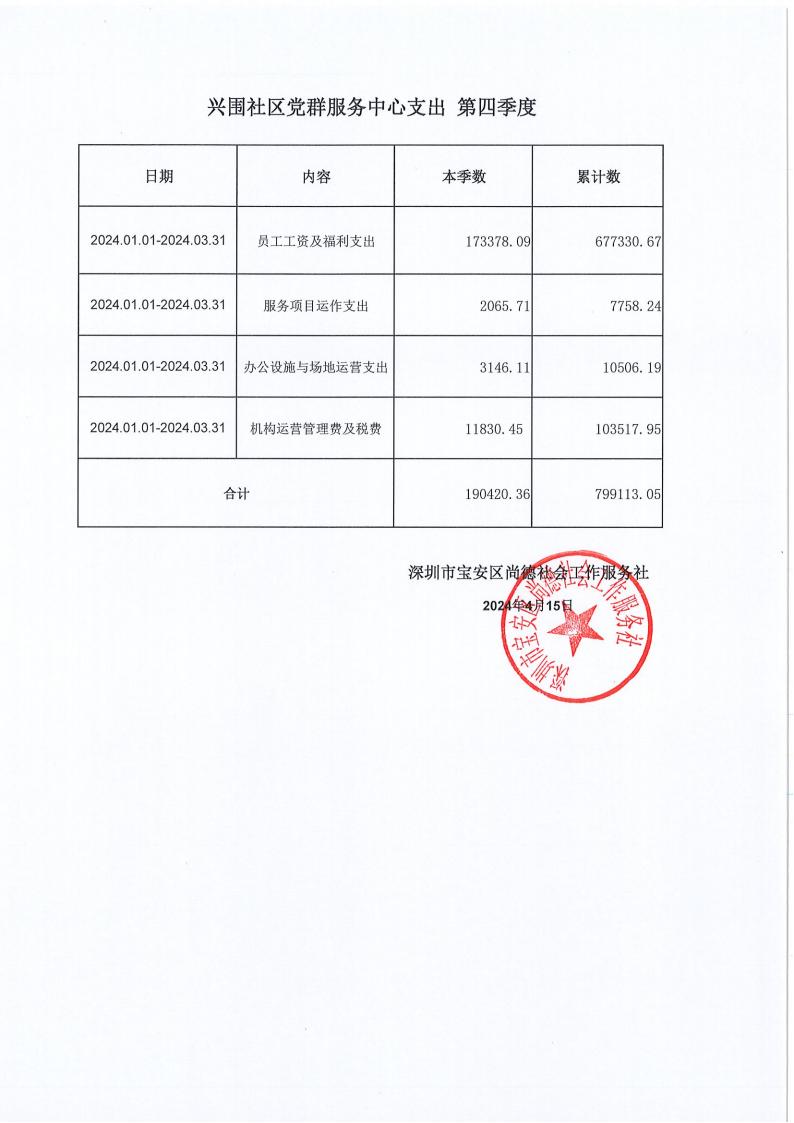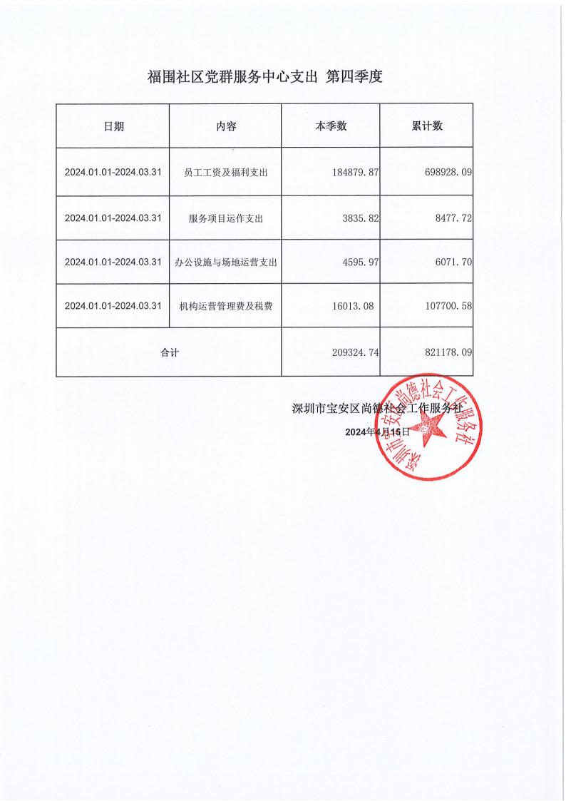 关于深圳市宝安区尚德社会工作服务社宝安区福永街道福围、福永、兴围社区党群服务中心支出第四季度的公示
