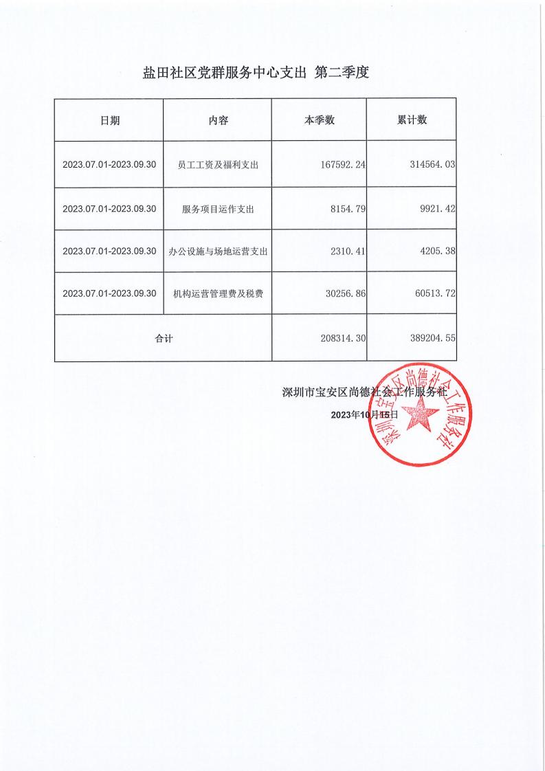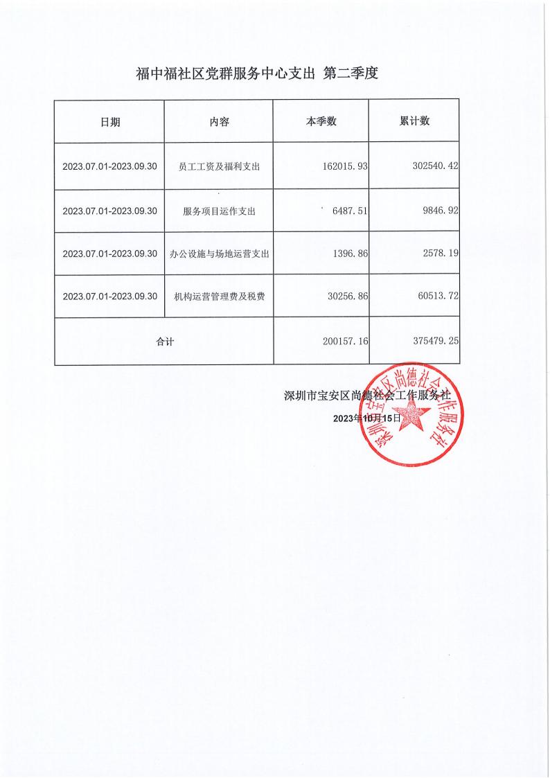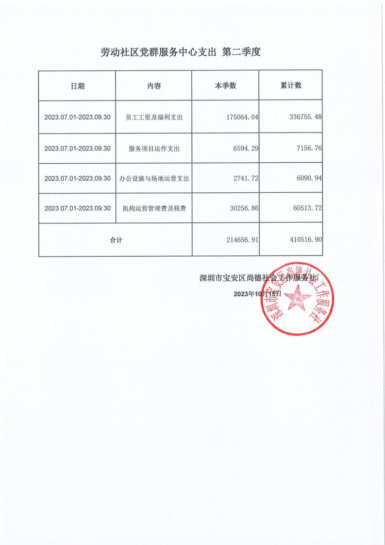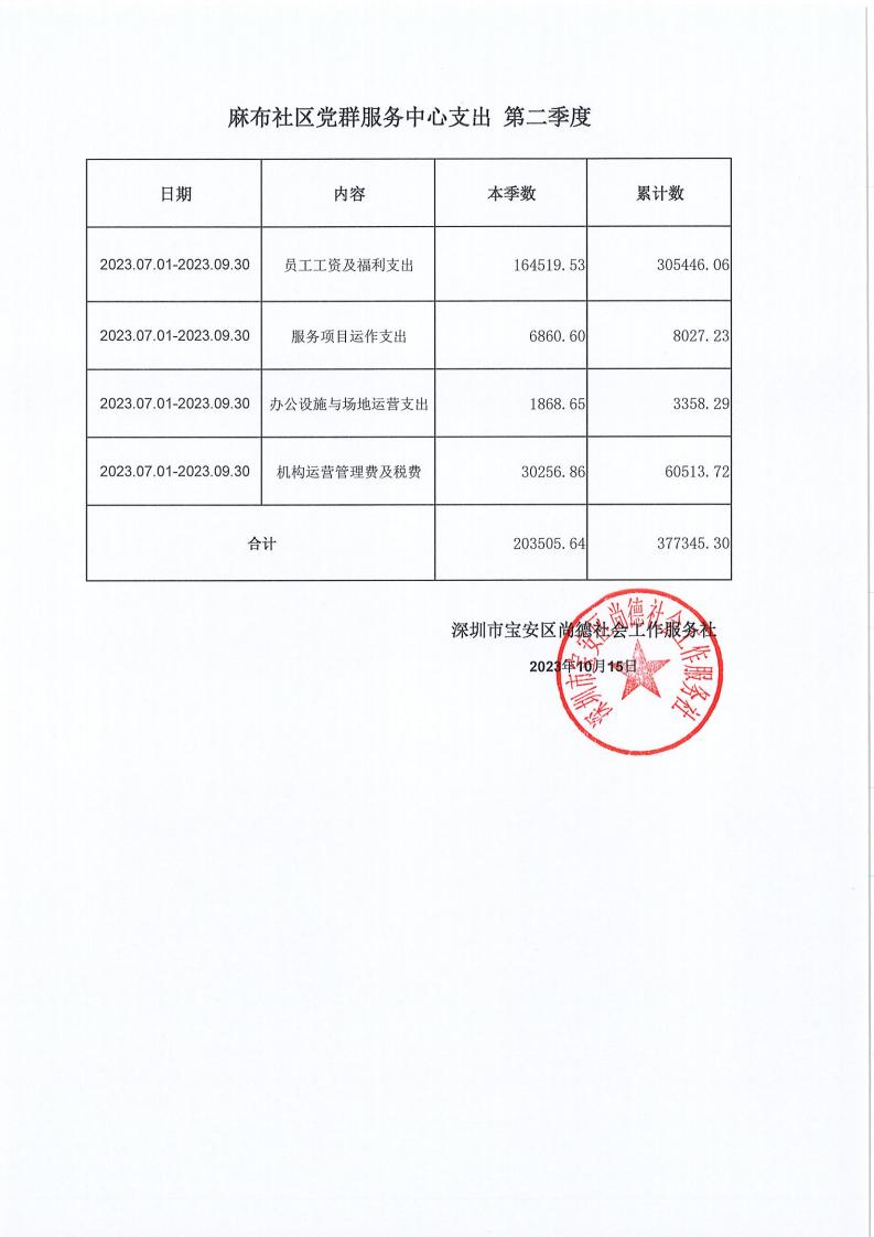 关于深圳市宝安区尚德社会工作服务社宝安区西乡街道福中福、共乐、蚝业、径贝、劳动、麻布、盐田、永丰、渔业社区党群服务中心支出第二季度的公示
