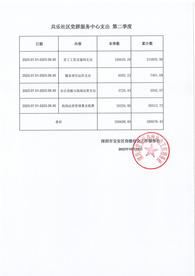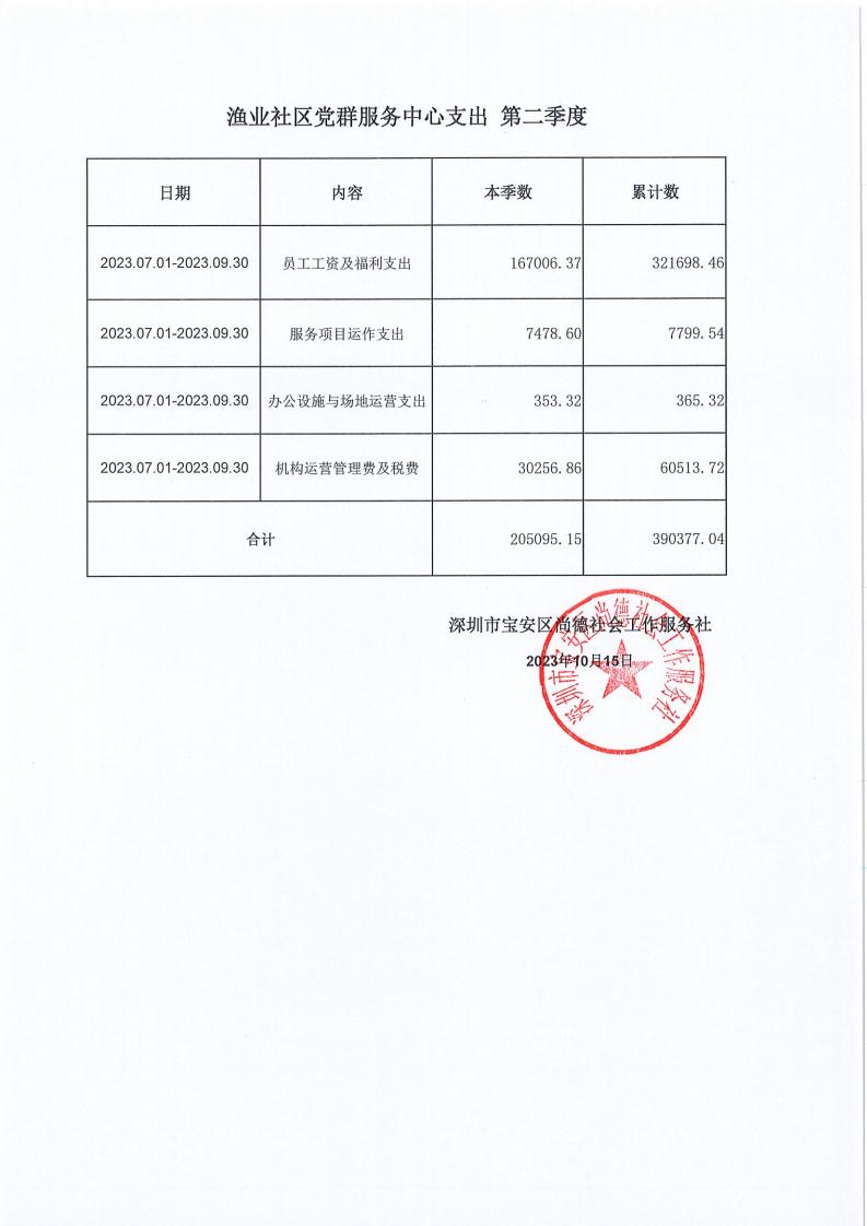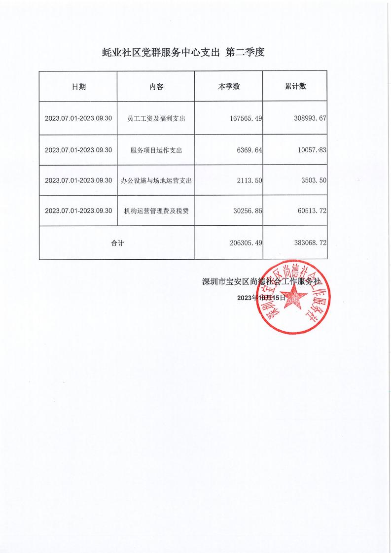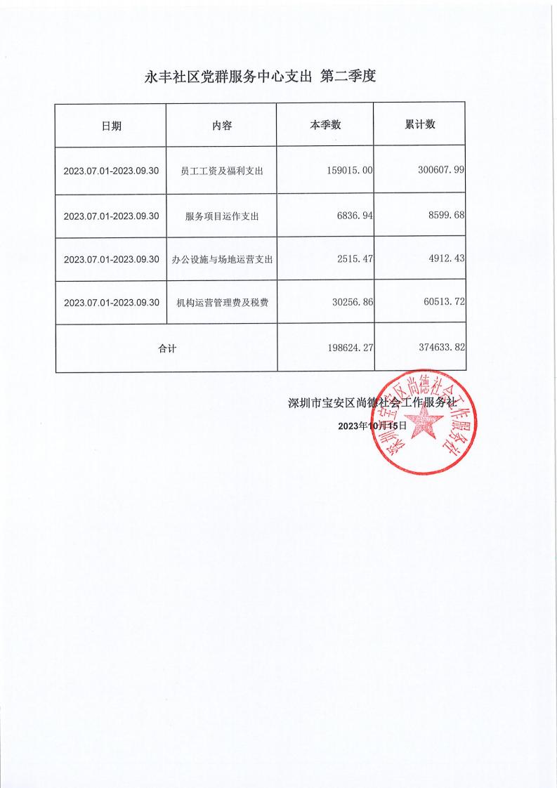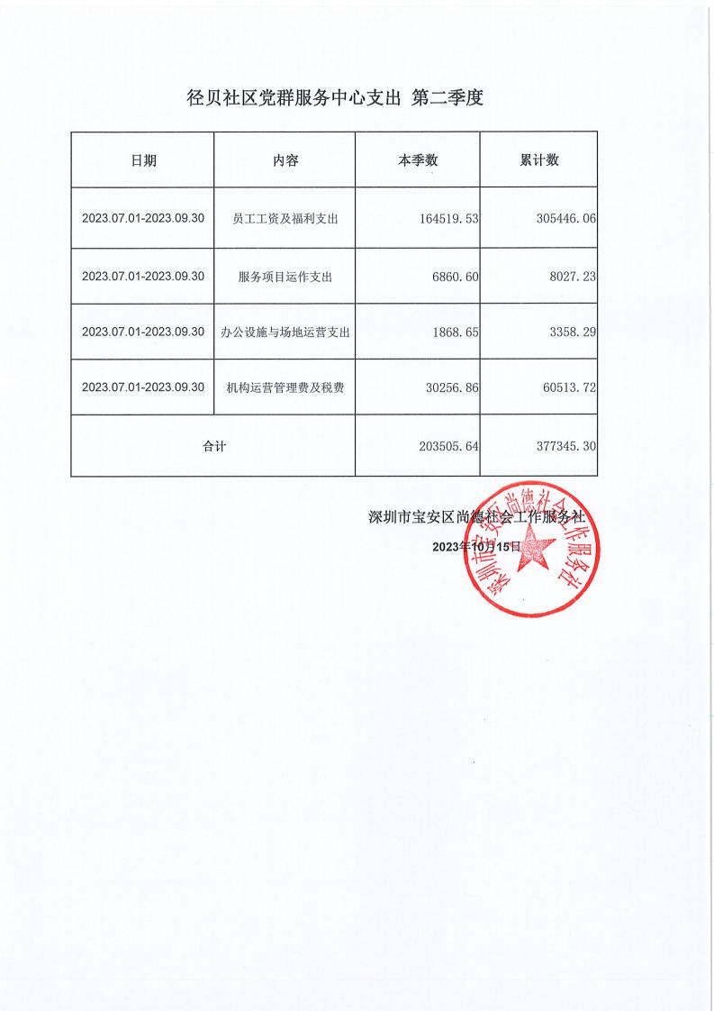 关于深圳市宝安区尚德社会工作服务社宝安区西乡街道福中福、共乐、蚝业、径贝、劳动、麻布、盐田、永丰、渔业社区党群服务中心支出第二季度的公示