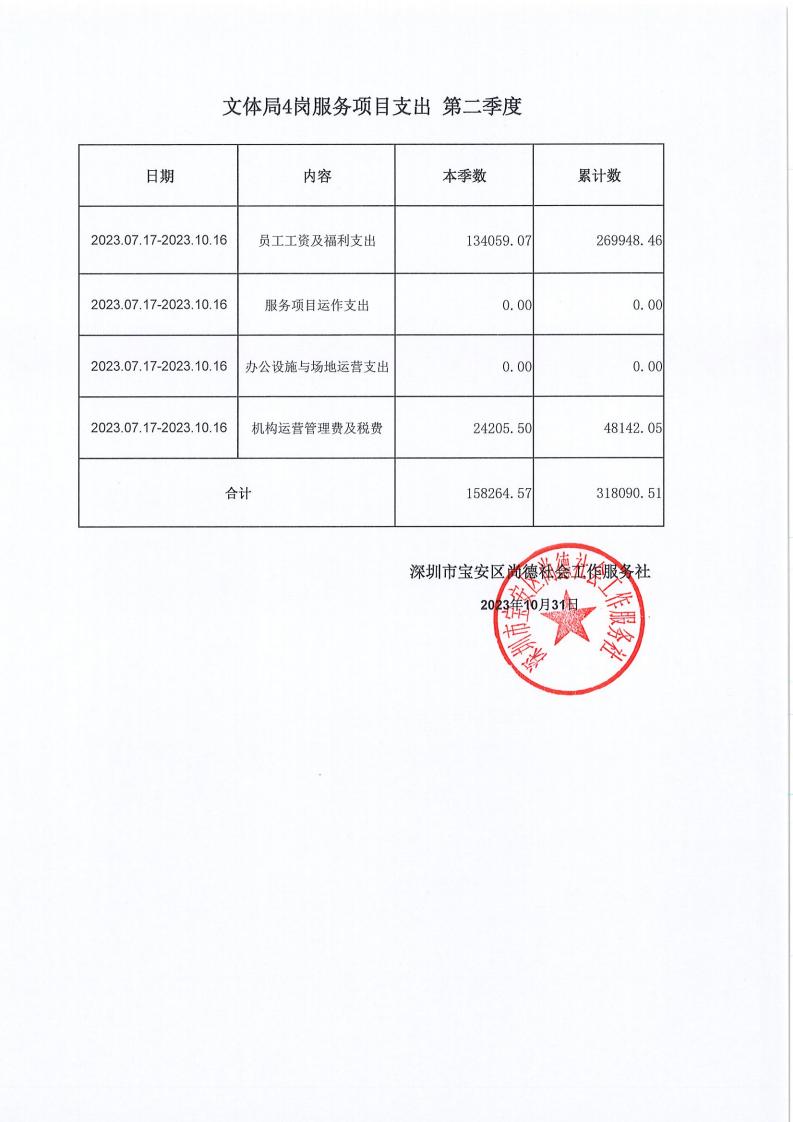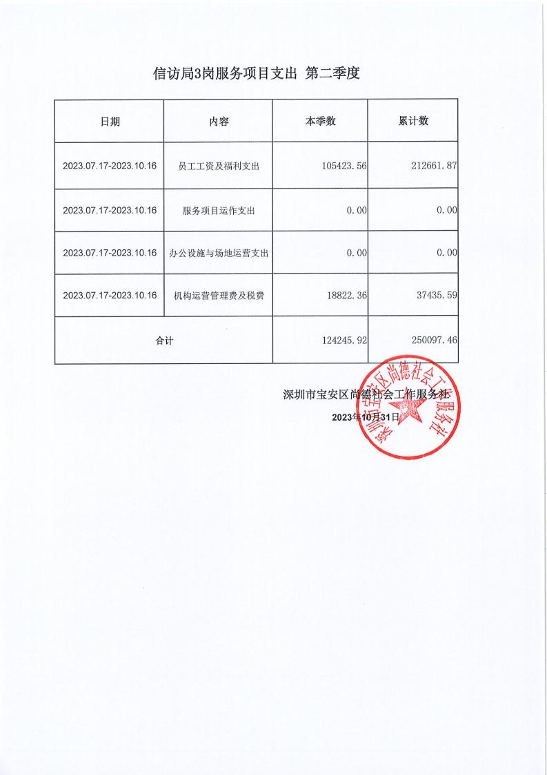 关于深圳市宝安区尚德社会工作服务社的宝安区购买社会工作专业化服务 (信访局、政法委、卫健局、文体局) 项目支出第二季度的公示
