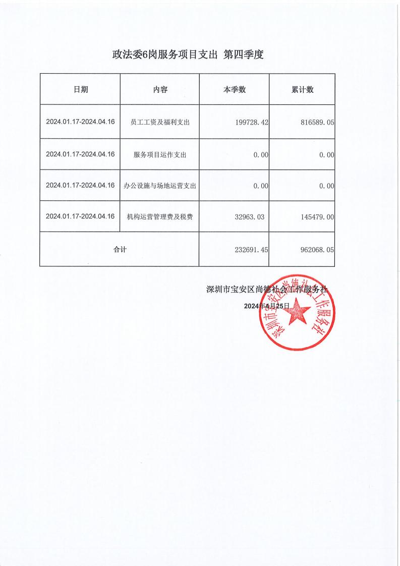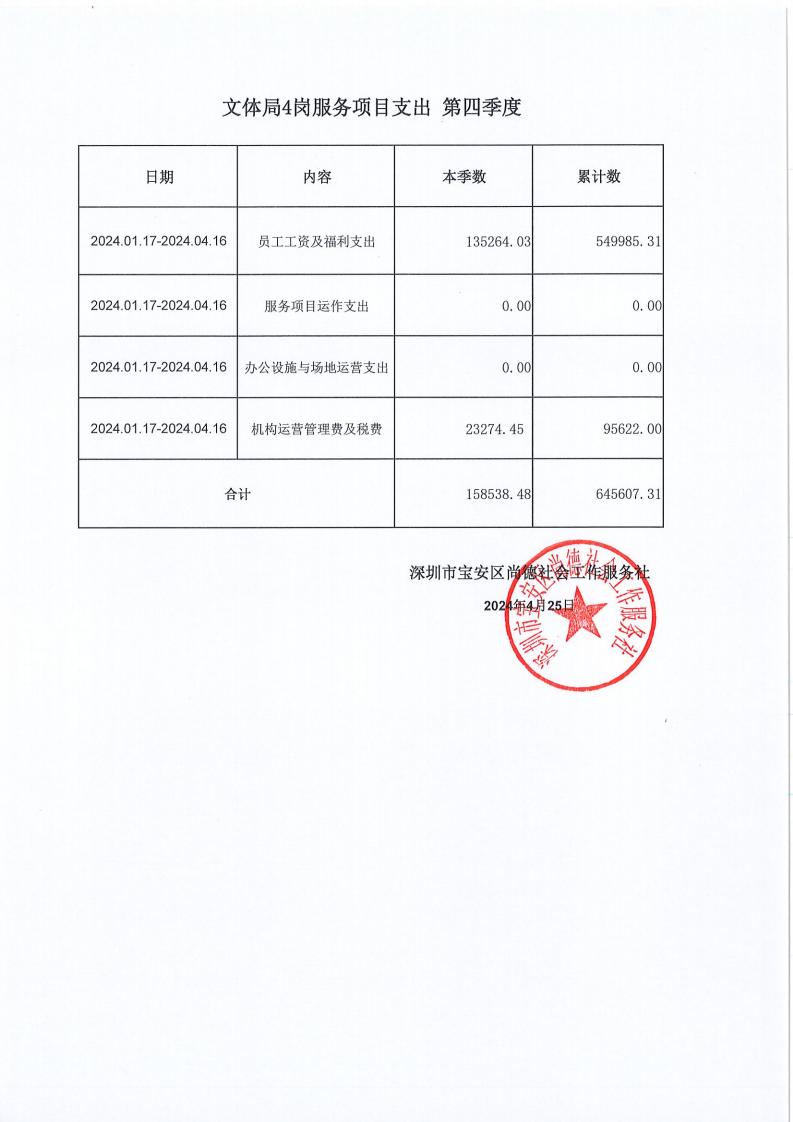 关于深圳市宝安区尚德社会工作服务社的宝安区购买社会工作专业化服务 (信访局、政法委、卫健局、文体局) 项目支出第四季度的公示