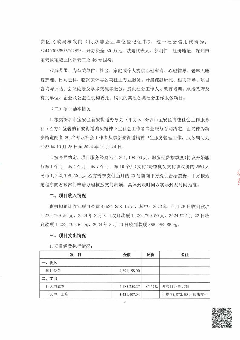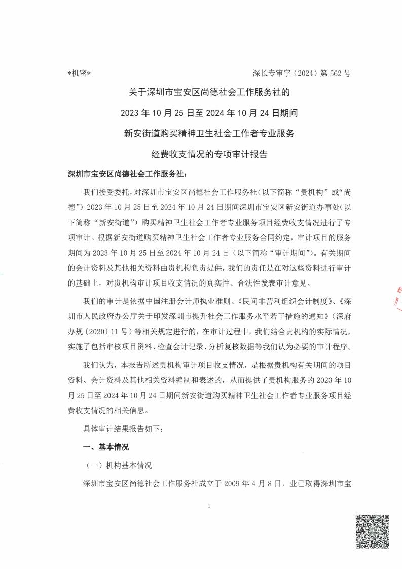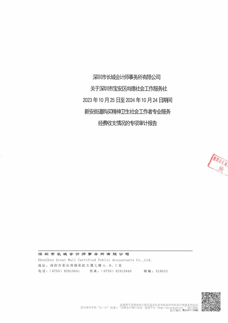 关于深圳市宝安区尚德社会工作服务社的新安街道购买精神卫生社会工作者专业服务经费收支情况的专项审计报告的公示