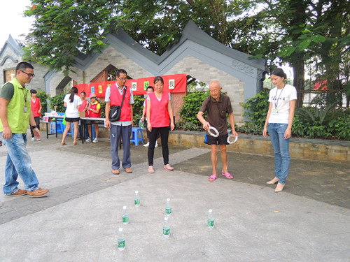 活动共设置了四个环节,有吹球,套瓶等事宜老年人娱乐的游戏。活动伊始,就有不少路过的老年人纷纷被我们的趣味游戏所吸引,在社工的引导下,老人们跃跃欲试,积极参与了各项游戏,赢得了精美实用的礼品。此次活动,中心更是招募了义工参与协助,每个游戏摊位都安排了一名义工协助,在场的义工也都充满了激情,用热情地心与居民朋友互动。