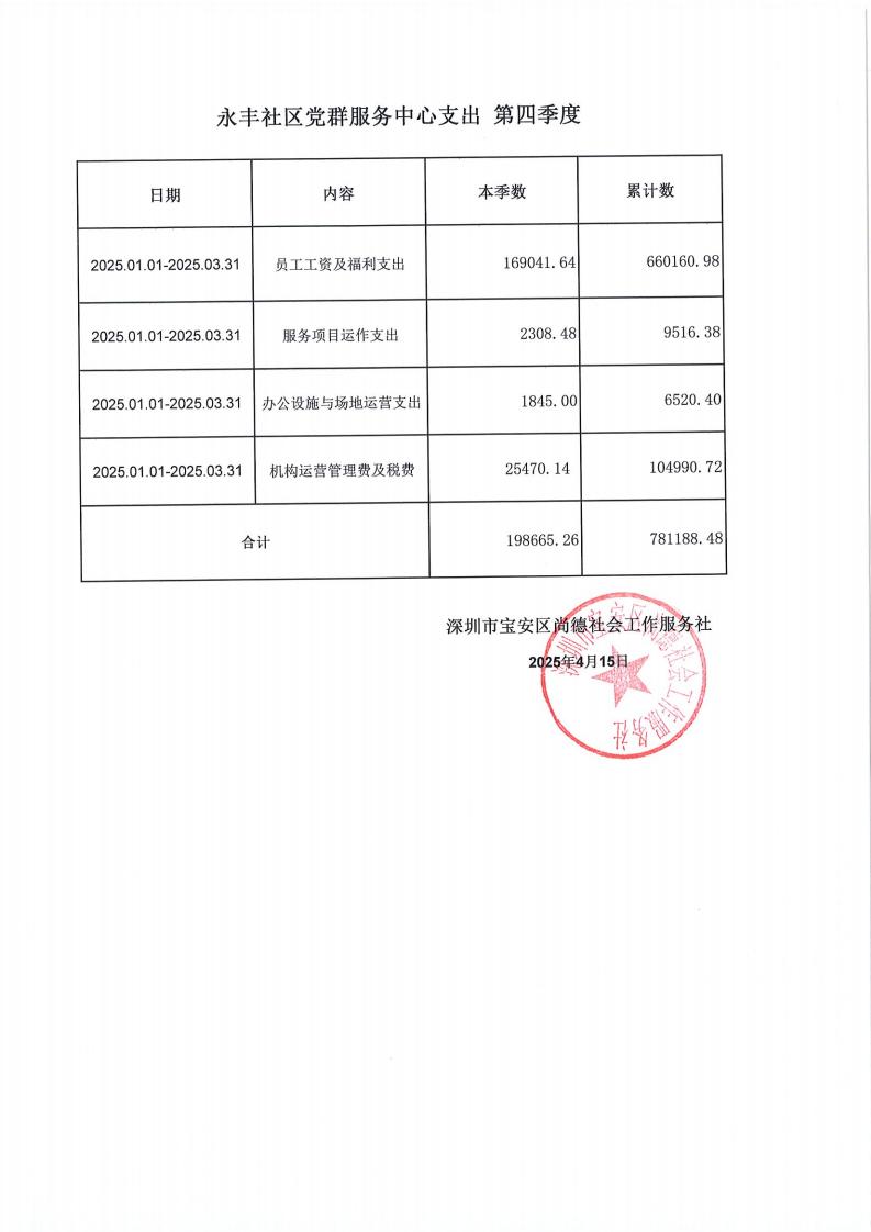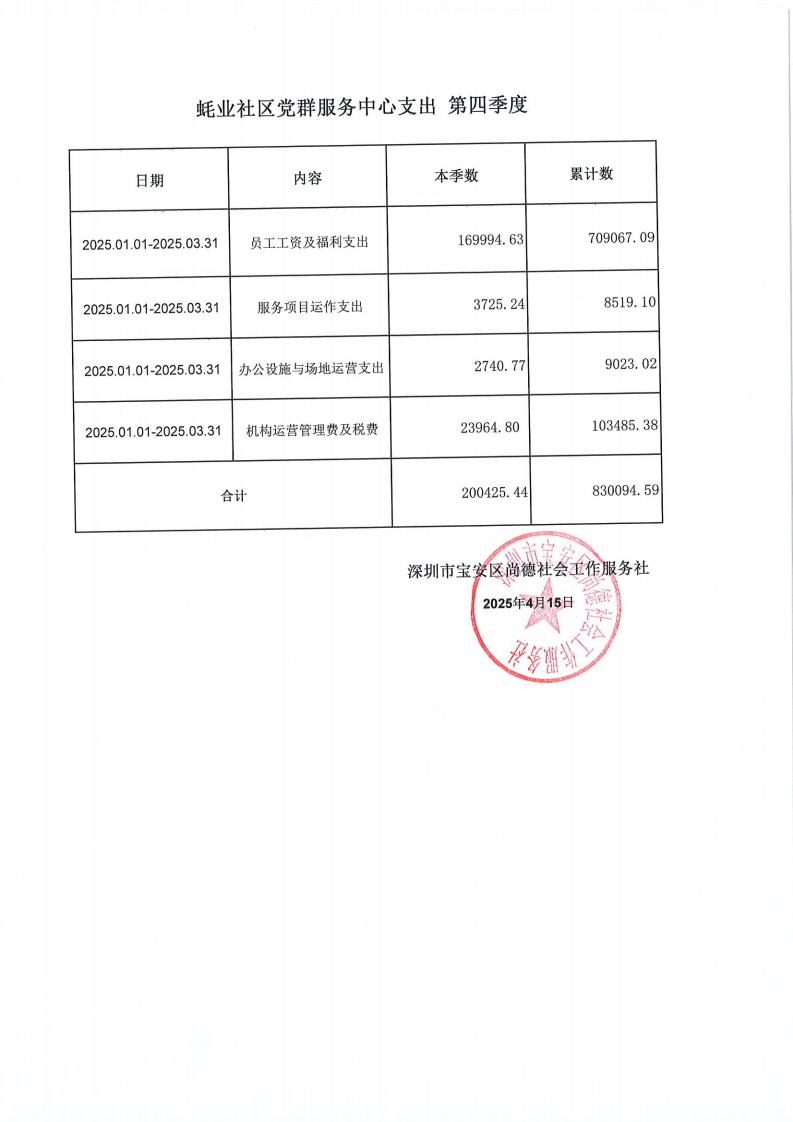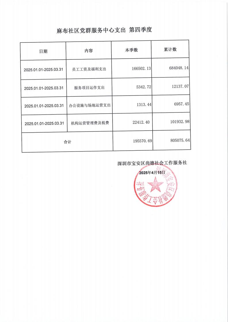 关于深圳市宝安区尚德社会工作服务社宝安区西乡街道福中福、共乐、蚝业、径贝、劳动、麻布、盐田、永丰、渔业社区党群服务中心支出第四季度的公示