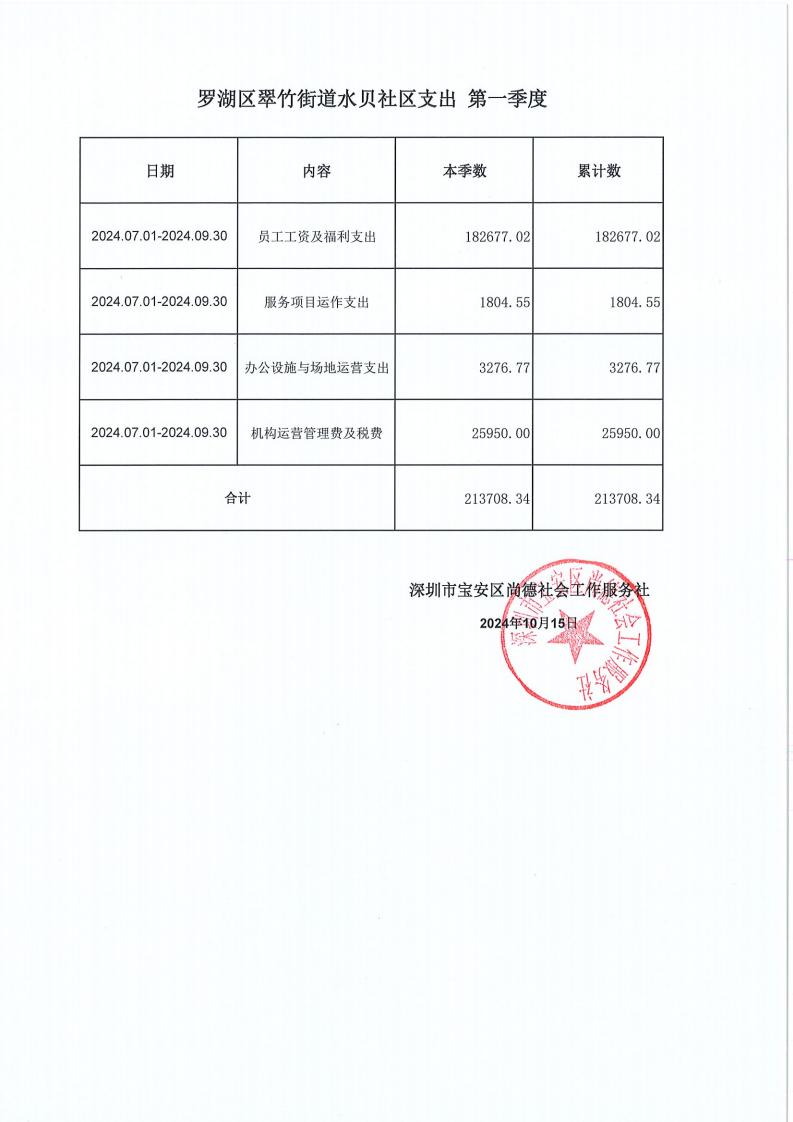 关于深圳市宝安区尚德社会工作服务社的罗湖区翠竹街道水贝社区党群服务中心、东湖街道(金湖、金岭、梧桐山)社区党群服务中心支出第一季度的公示