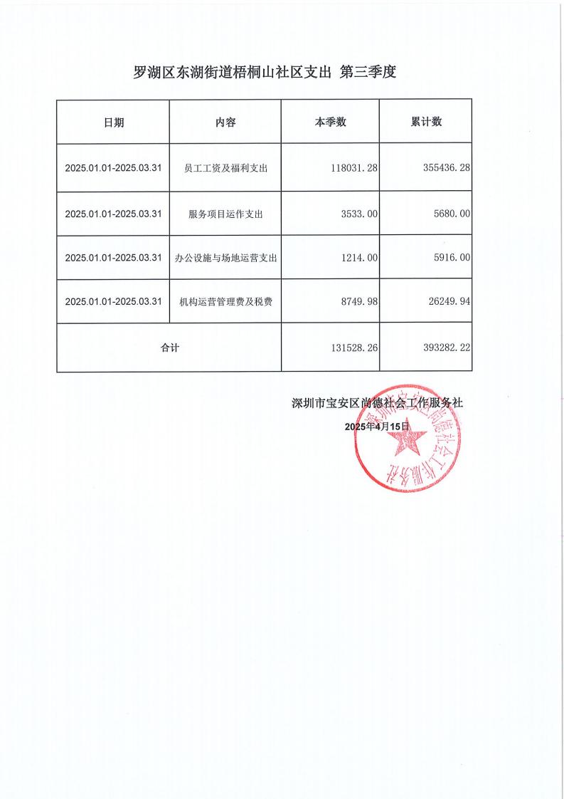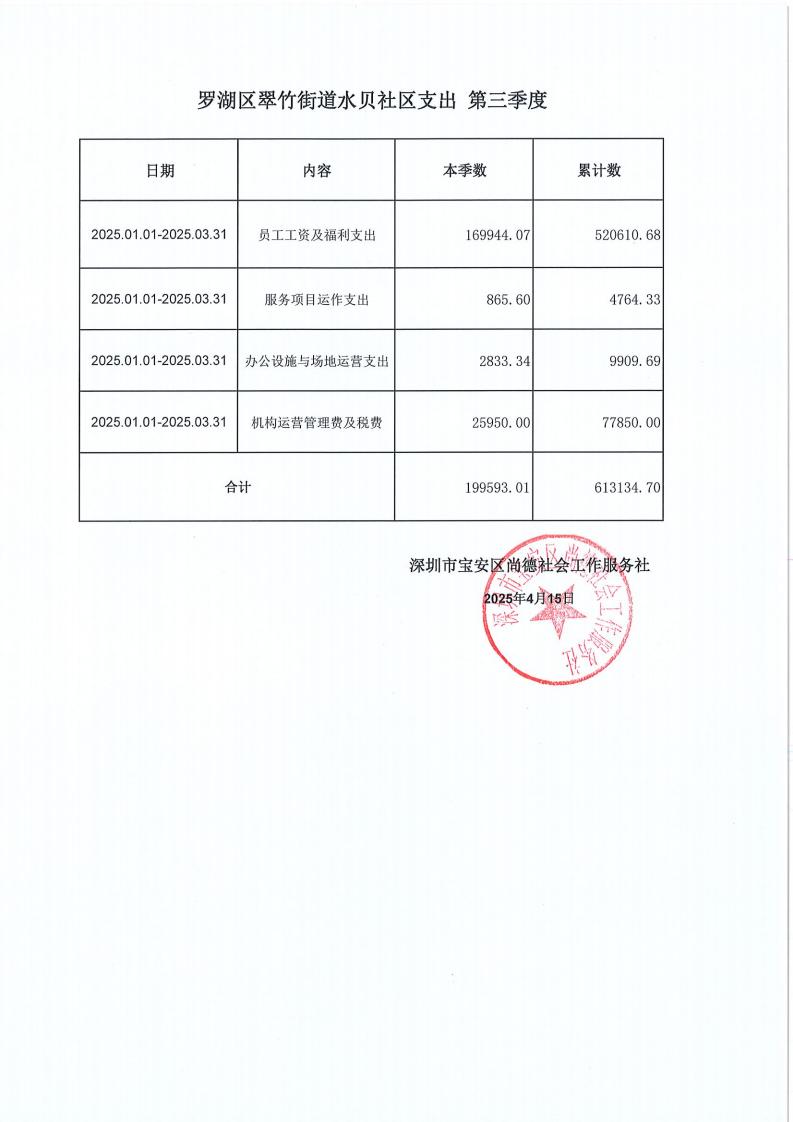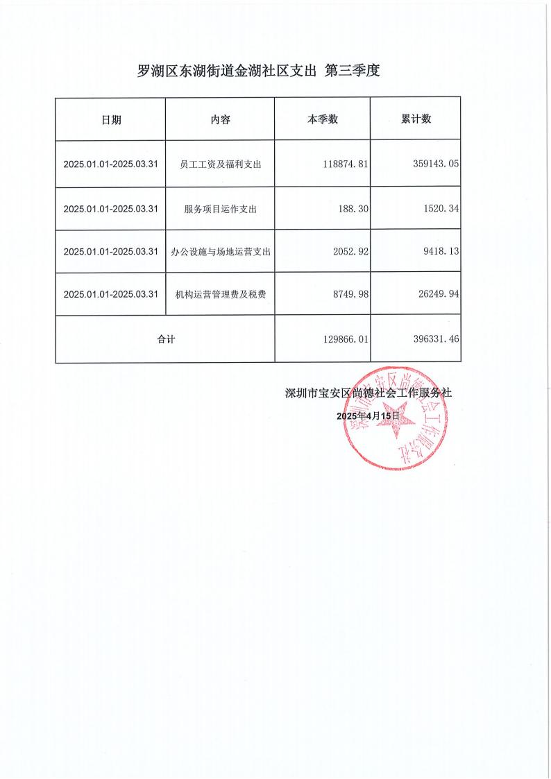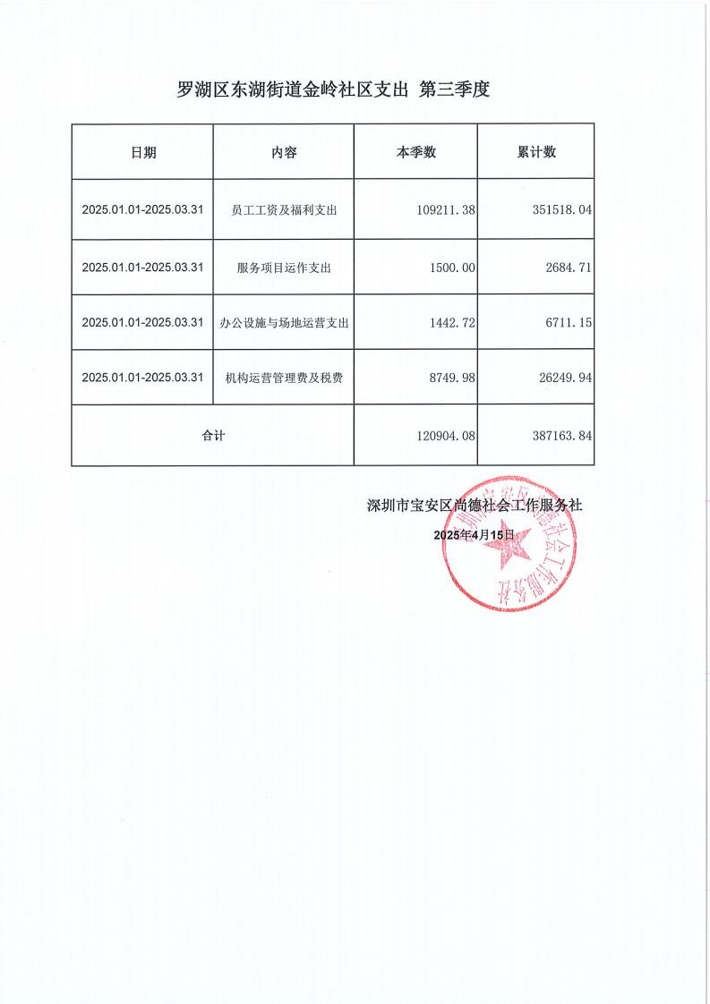 关于深圳市宝安区尚德社会工作服务社的罗湖区翠竹街道水贝社区党群服务中心、东湖街道(金湖、金岭、梧桐山)社区党群服务中心支出第三季度的公示
