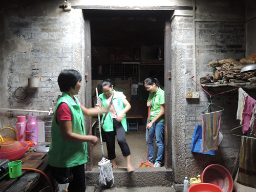 9月12日下午3点,我们前往社区独居老人的家中,为其居室进行大扫除。我们分成两组人,一组负责陪老人聊天,倾听老人心事,了解老人生活状况,另外一组负责大扫除部分。我们在询问老人哪些地方需要清洁后,就开始了大扫除。