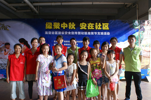 2013年9月15日下午3点,海富社区服务中心联合社区工作站、晶晶幼儿园、美丽童话照相馆共同举办了“缘聚中秋 安在社区”主题活动。此次活动实现了社工带领义工双工联动,吸引了将近200位社区居民的参与,活动获得圆满成功。