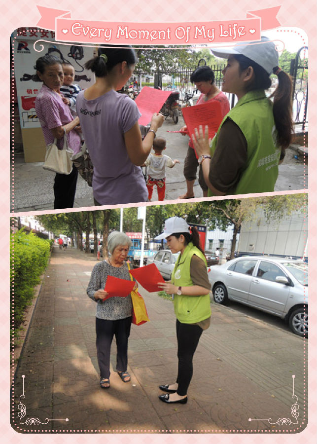 2013年10月10日下午,新澜社区服务中心在社区义工的大力帮助下在社区篮球场开展社区助老服务月宣传及义工招募活动。