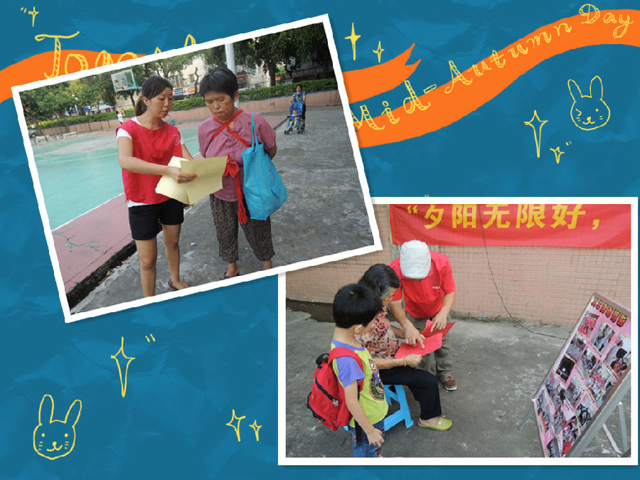 当前,我国人口老龄化形势严峻,呈现老年人口基数大、增长快、高龄化、空巢化和需要照料的失能半失能老人比例高、数量多等特点。开展敬老、助老的主题活动,在全社会弘扬孝道文化,是应对人口老龄化的重要道德保障。中心针对社区老年人占户籍居民比重大的特点特制定以“夕阳无限好,邻里情更浓”为主题的社区助老服务项目方案,在开始实施之前为了让社区居民了解中心的爱老、惠老系列活动,同时借助系列活动促进社区居民自助互助工作的建设。在现场组织义工通过悬挂横幅、宣传栏张贴海报、走街串巷上门拜访去派发宣传单讲解活动和招募义工、制作以往中心社工携手社区义工开展活动的风采展架吸引了大批社区居民前来咨询,同时招募到30名义工朋友加入到中心义工队。本次活动为社区居民广泛参与中心举办社区活动奠定了群众基础,同时招募到的义工为后期系列活动的顺利开展挖掘人了资源。
