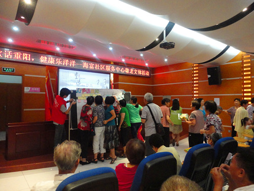 10月13日上午海富社区服务中心(以下简称中心)举办了“金秋话重阳,健康乐洋洋”活动,恰逢重阳节,中心举办茶话会让社区长者相聚一堂话重阳,古人共饮菊花酒,今人共饮菊花茶,观赏由社区长者带来精彩的太极拳和太极剑表演,畅谈趣事,其乐融融。