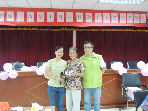 为了更好地发扬敬老、爱老的中华文化传统,2013年10月20日下午3点,在社区工作站和居委会的支持下,新澜社区服务中心社工联合社区义工在大布巷居委会党员活动室举行了“夕阳无限好,邻里情更浓”助老月系列活动之“爱在新澜,浓情十月”——桂澜社区老年人茶话会。