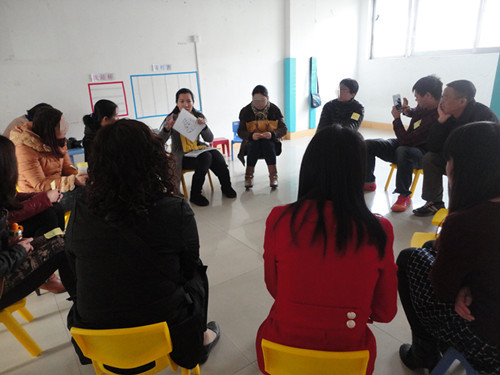活动快结束时,老师和大家一起讨论,平常生活中遇到的困难,老师细心的给大家解释,并分析原因,给家长进行引导。如一位组员说到“带孩子出去玩时,孩子老是睡地上不起来,怎么办,只有满足的他的心愿,他才会起来。”老师就此话题和大家一起讨论,孩子每次出现此现象时,应该让孩子能够明白他这种方式是不能够达到他想要的东西的,如若继续,家长应躲在孩子看不见的地方并不被发现,等待孩子自己站起来,待孩子起来后,家长可装作偶遇见到他。其他组员也建议到“每当孩子快要出现此现象时,可事先通知孩子,要怎么做,让孩子能够做好思想准备”。活动讨论的很热烈,组员在此次活动中表示很收获很多,希望能多开展类似的活动。