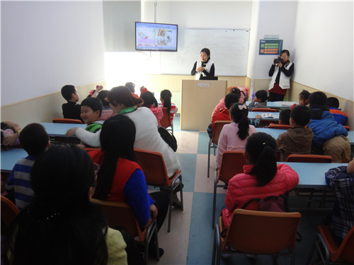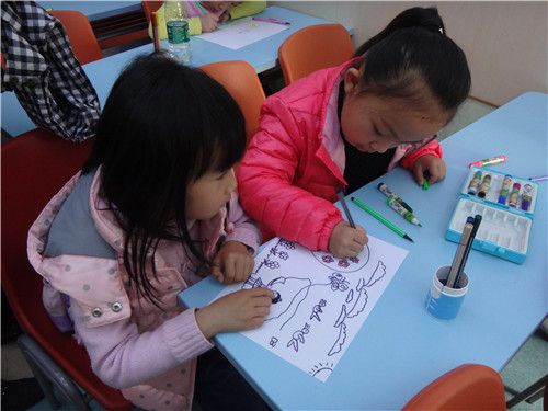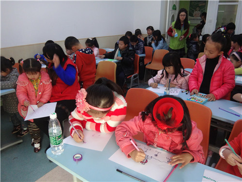当天上午一大早,社工和义工就来到新东方学校布置场地,摆放椅子、抬桌子、测试器材等。十点钟活动正式开始,本期活动的主题为:我和春天有个约会。活动共包括绘本共读、绘本推荐和“画春天”三个环节。小朋友们手里拿着五颜六色的画笔在白纸上描绘着属于自己的春天,充满了希望与朝气。