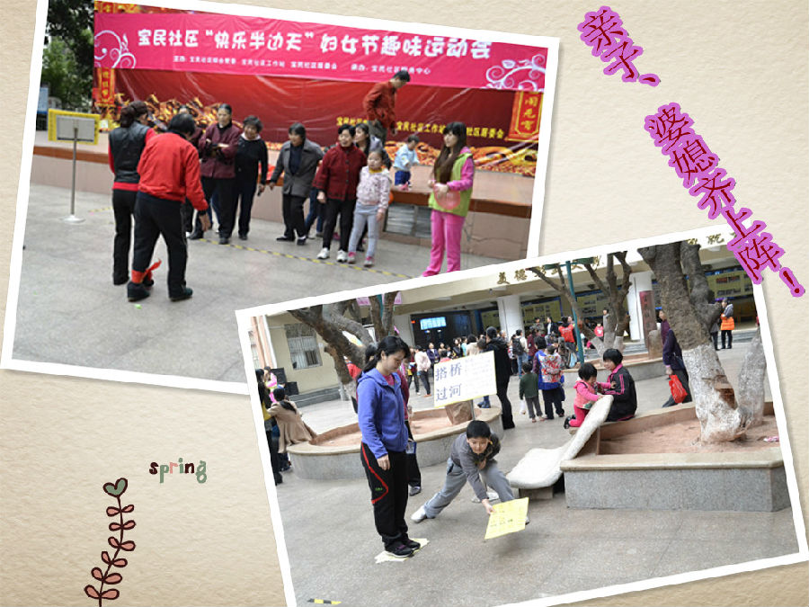 3月8日上午9时-11时,由宝民社区工作站、社区居委会主办,社区服务中心承办的“快乐半边天“妇女节趣味运动会活动在宝民社区服务中心花园内如期举行。?xml:namespace>