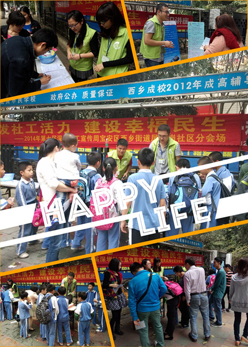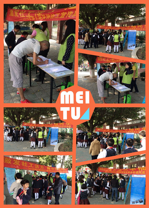3月18日是第8个国际社工日,是全世界社会工作者的共同的节日,也是宣传、推广社工的一个有利契机。为了提升凤凰岗社区居民对凤凰岗社区服务中心以及社工的认识,拓展社工服务,发掘社区潜力;为此,凤凰岗社区服务中心依据中心性质、社区特点,结合群体需求以及社工的服务宗旨与理念,于 2014年3月18-24日在凤凰岗东区小公园、凤田中心区、西区小公园、凤凰岗社区服务中心门前、凤岗小学开展5次社工宣传周活动。活动环节分为:派发宣传单、展板宣传、社工现场介绍、义工招募、四点半课堂招募、问卷调查、互动小游戏等。