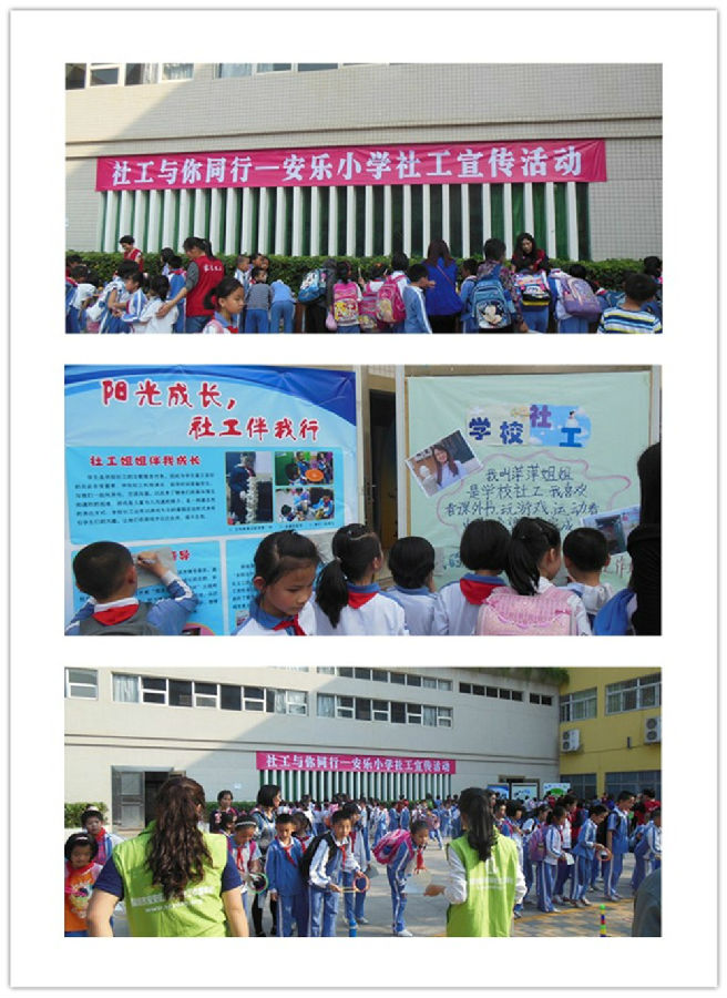2014年3月27日下午,伴随着下课的铃声,安乐小学“社工与你同行”宣传活动开始了。此次活动一方面为了让广大师生和家长更加深入的了解学校社工的服务方法、内容,另一方面更直接的了解全校师生和家长的需求,更好的为全校师生和家长服务。