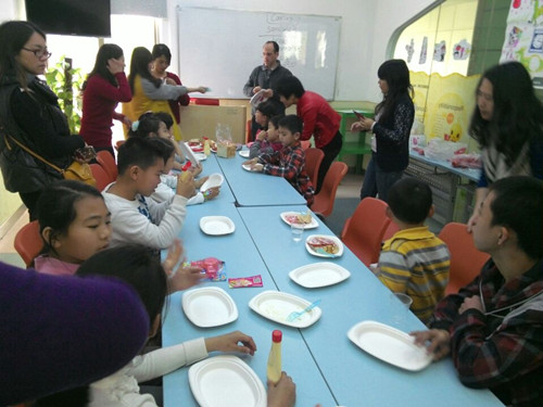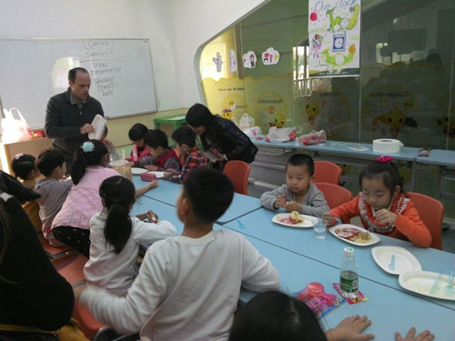 外教教孩子们做三明治