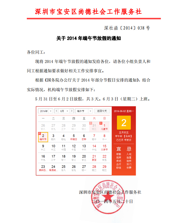 关于2014年端午节放假的通知