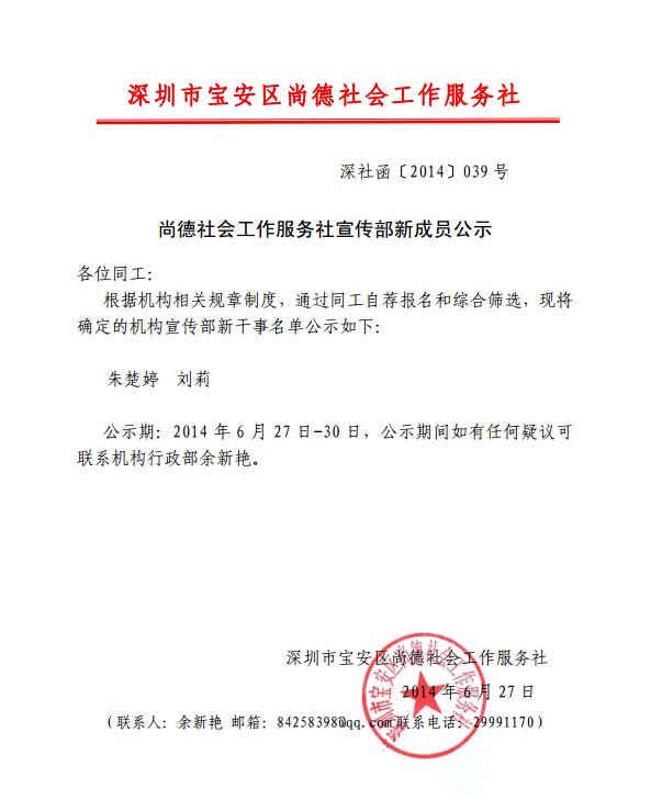 尚德社会工作服务社宣传部新成员公示
