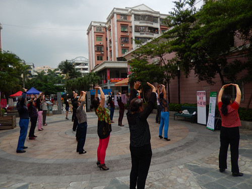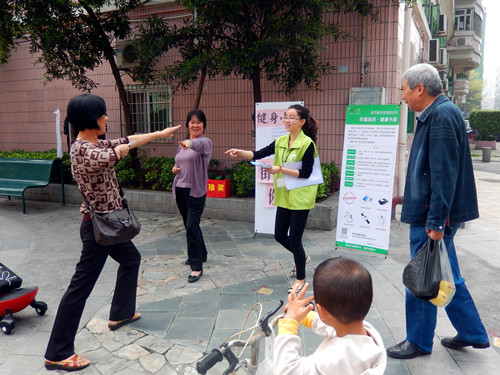 “做了一下子就让我好好地出了一身汗,下周五我让我家老头也一起过来”,其中一位长者在活动后对社工说。“八段锦”作为古代传统健康文化的结晶与现代健康保健途径——“健康小屋”相结合,让社区居民的健康如此简单。而户外开放式小组使社工与社区居民得以双向互动,也有助于提升大众对社工服务的认知。