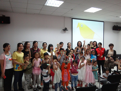 这期故事会除了传统的绘本故事分享外还增加了手工折纸环节,小朋友把亲手折的作品送给爸爸妈妈,场面温馨感人。