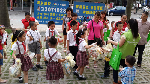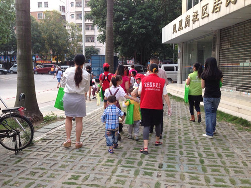 活动吸引了10名家长、12名儿童参加,其中儿童最小的只有3、4岁,家长年龄最长是位60多岁的爷爷,带子孙子来参加亲子义工活动。首先社工与10组亲子分享、探讨了生活中的爱护地球的环保小常识,亲子们都表示,以后会尽量从每一个小事做起来爱护我们的地球。接下来,20余名亲子义工走向凤凰岗社区,开始了美化社区环境、倡导义工精神的环保行。一路上,家长们有说有笑,在捡拾地上垃圾的同时探讨着育儿经,孩子们则是最开心的了,抢着捡拾地上的垃圾,不一会,孩子们手中的垃圾袋就都装满了,社区街上则变美了许多。活动中,旁观的居民对其朋友说:“瞧,这是义工,义工就是做好事的,不错呀!”一位饭店老板看见亲子义工的身影们之后说:“今天你们义工要是有谁来我这里吃饭,我给你们打九折哈”。这也是对义工行为的支持与肯定。