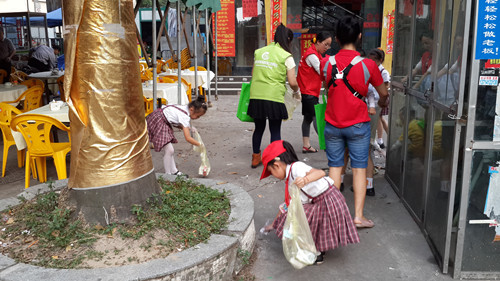 3.亲子义工们开始清理街上的垃圾啦