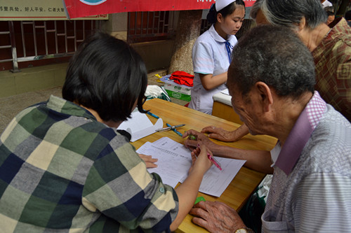 中心社区为老人办理健康会员卡