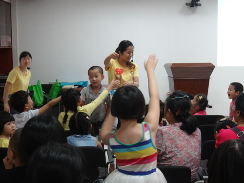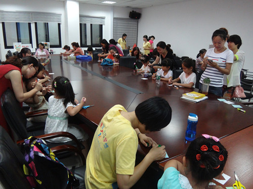 活动结尾还安排了手工剪纸环节,孩子们拿起小剪刀小心翼翼的制作起心形卡片,大家互相帮忙,做得快的帮助做的慢的,很快就把爱心卡片做好,亲手送给自己妈妈,在场所有人都见证着这感人的一幕。妈妈们表示:“这个故事会办得真有意义。”