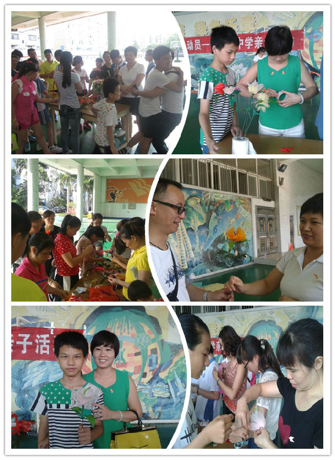 2014年5月24日,因天气原因推迟很久的亲子活动终于在海滨中学的操场上拉开了帷幕。温暖的阳光照耀在参加活动的每个人的脸上,比阳光更灿烂的是每个人的笑容。活动共分为三个环节:第一个环节,由驻校社工李晶组织大家一起做热身游戏——天使光环,所有的参与人员手拉手组成一个圈,社工将一个呼啦圈、一根松紧绳分别放在两个牵手人的中间,当社工喊出开始的指令后,呼啦圈和松紧绳按照顺时针的方向依次传到下一个人,这过程中唯一的要求就是牵着的手不能松开,当谁的手松开或者被松紧绳和呼啦圈同时套住的人,就是天使选定的“幸运儿”,由社工给与他们“爱的奖励”——当众展现自我的机会一次,被选中的有家长有学生,家长们有表演倒立的、转呼啦圈的、还有跳舞的,学生比较害羞则表演俯卧撑。无论是哪一种都受到了其他参与人员的欢迎与掌声。热热闹闹的热身游戏结束了,大家也熟悉起来,接下来第二个环节,以班级为单位将参与人员分为两组,由来自安乐小学的社工陈娟萍和来自坪洲小学的蔡海霞同工分别带领两队完成接下来的一系列互动。盲捡彩球——首先请家长蒙上眼睛,由学生牵着家长去捡地上的彩球,期间不能有任何的语言提示,只能依靠动作,第二轮只能用语言提示,不能有身体接触,之后亲子互换角色,这个分享过程中,家长和学生纷纷表示语言沟通和非语言沟通的重要性;换位思考——让家长蹲下来扮演小孩,由家长和孩子一起从起点走到终点,让家长和孩子都从对方的角度去思考问题,揣摩对方的思想与感受,学会理解和尊重对方。最后的亲情时刻,由学生写出时间、地点、关键词来描述一件和家长一起的最开心的事,有家长来猜孩子想表达的是那件事,有的人是和家长一起去世界之窗,有的是过生日的时候一起去吃麦当劳,还有一个学生写的是2014年5月24日和家长一起来参加亲子活动,有些家长一看就知道孩子想说的事件,有的家长在经过提示后也很快的知道,大家开心的笑作一团。