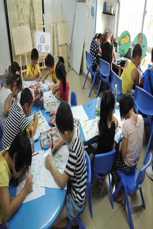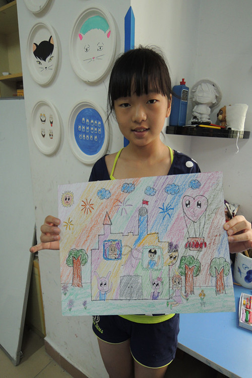 老师先详细介绍了各式各样绘画的绘画的特点与绘画技巧,有水彩化,油墨画,简笔画,水粉画等等,让小朋友们掌握在学习绘画之前对绘画有了一定的深入了解。后半段时间是学生的作画时间,此次绘画主题是“我的家我的美好生活”。经过四十多分钟的努力作画,小朋友最终完成了自己的大作。有的小朋友画一个城堡,有公主和王子,有些小朋友的家是一栋漂亮的别墅,有些则是简简单单的一间小屋,夕阳西下炊烟袅袅,甚是温馨惬意。最后老师让小朋友介绍自己作品的含义以及创作的灵感,每位小朋友都意见不一,大家都积极的发言,甚是热闹与快乐。“天才小画家--梦想起航暑期绘画培训班”第一课也在欢声笑语中告一段落。