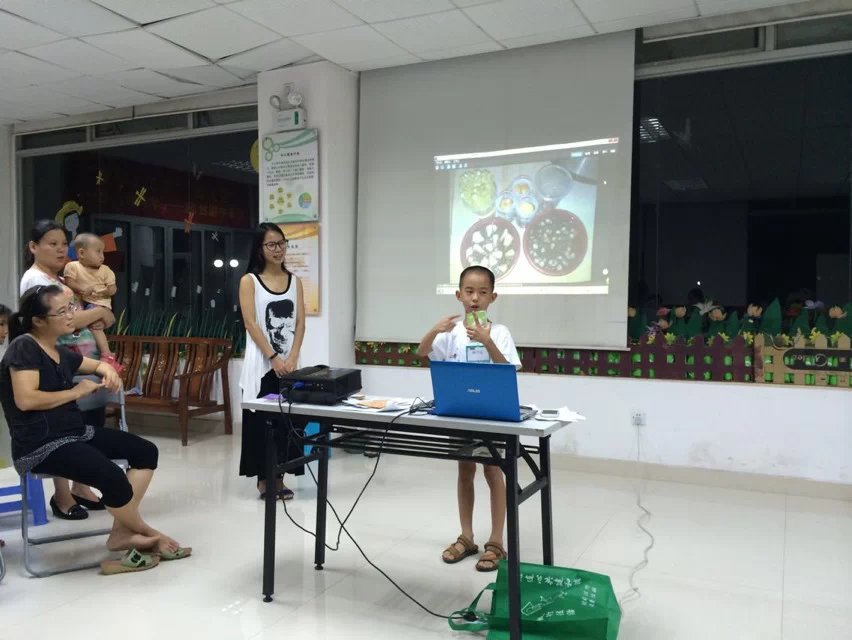 “哇,你的凤仙花苗长得好高啊,我的小花生才开始发芽呢。”小朋友你一言我一语的议论起来。7月 30日晚8点,在福中福社区服务中心内,10对参加“浇灌成长”亲子栽培坊的家庭拿着自己已经发芽的小盆栽开始了第二次小聚会。