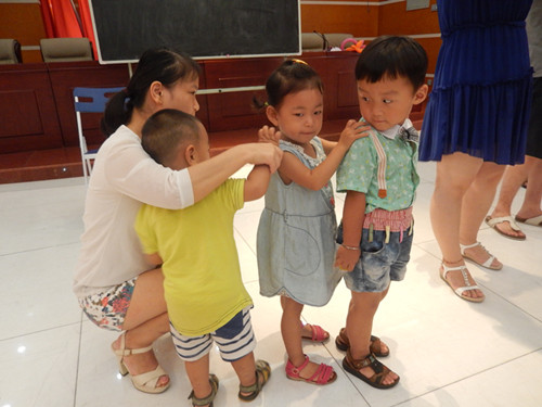 为了让小朋友和家长之间能够相互认识,促进组员间的互动,锻炼孩子的交际能力,社工共设置了3个环节:“看图识水果”、“找朋友”、“木头人”。组员在游戏的过程中,表现的很开心,会主动完成社工交代的任务。活动最后,为了增加组员对活动的归属感,社工引导大家一起制定了“小组契约”,如:“玩不同的游戏”、“多些互动环节”……,家长很踊跃提出自己的观点。