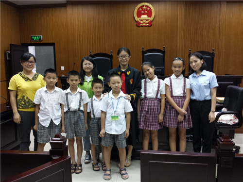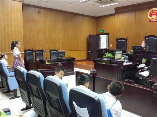 “全体起立!”2014年7月22日上午10点15分,随着一声清脆的法槌敲击声,郭某与某保洁公司合同纠纷一案在深圳市宝安区西乡人民法院第一审判庭公开审理。与往常庭审不同的是,这次庭审的旁听者是一群来自福中福社区服务中心的10余名社区小学生。今天他们首次踏入庄严的庭审现场,零距离接触并感受了一次法官工作。