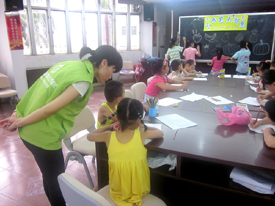 马山头社区内青少年儿童课余活动比较单一,为丰富青少年暑期生活,马山头社区服务中心的社工小朋友们开展了少儿绘画小组活动。7月18日,在马山头村委三楼活动室正式开展了绘画小组第一次活动,小组计划共6节课,为开放式的形式。绘画小组以身边的景物、动物、人物为主题,进行绘画练习和创作。通过绘画,希望激发孩子想象力和创新能力,激励孩子向善向美,身心得以健康成长,同时在与小组其他小朋友互动的过程中加强交流。