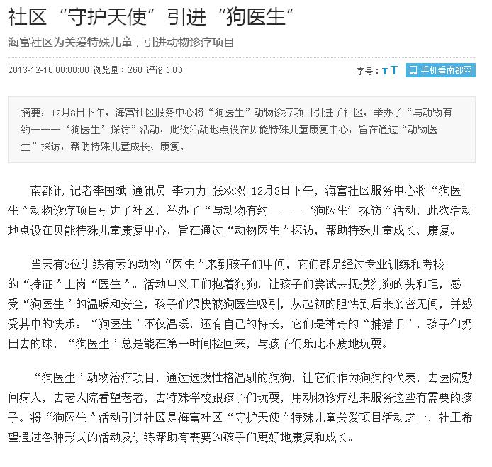 南都报报道海富社区服务中心