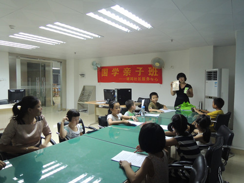 8月25日晚,塘尾社区服务中心开展的国学亲子班小组在朗朗读书声中进入尾声,历时一个多月的六节小组全部结束。