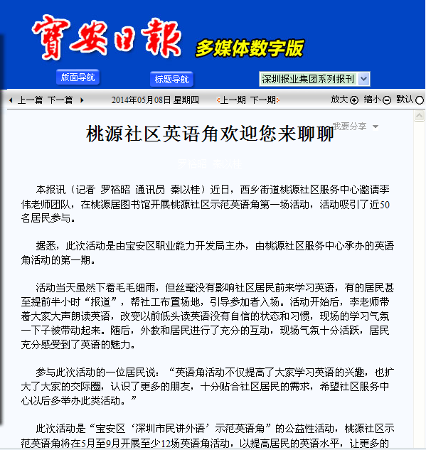 宝安日报 桃源社区英语角欢迎您来聊聊