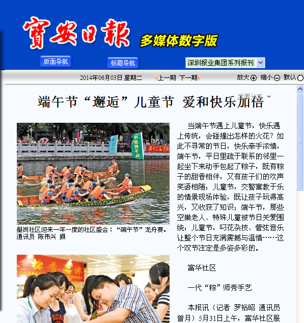 宝安日报 端午节“邂逅”儿童节 爱和快乐加倍