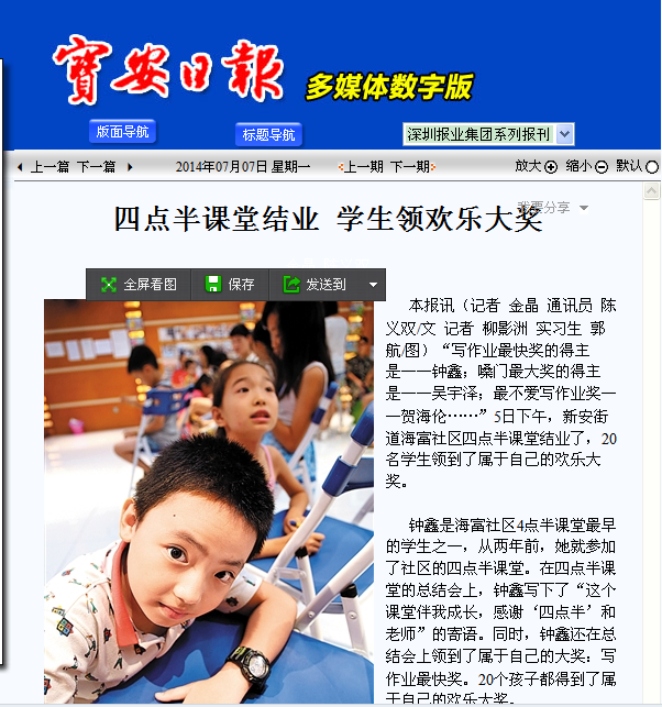 宝安日报 四点半课堂结业 学生领欢乐大奖