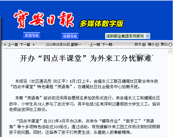 宝安日报 开办“四点半课堂”为外来工分忧解难