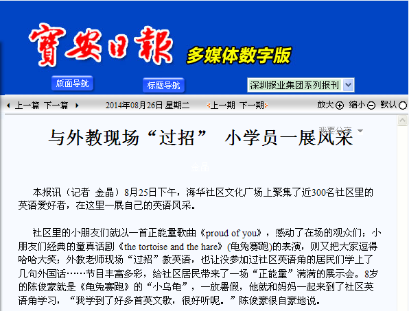 宝安日报 与外教现场“过招” 小学员一展风采