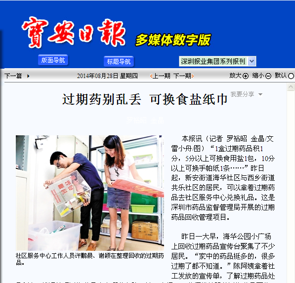 宝安日报 过期药别乱丢 可换食盐纸巾