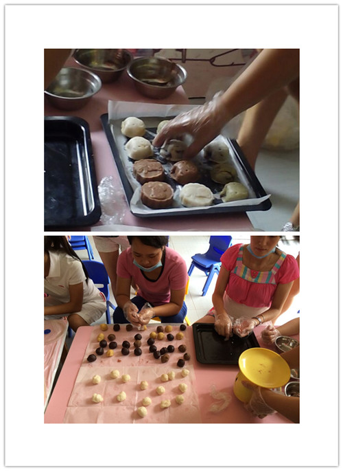 本次活动共有18人参加,在社工的指导下,家长们都期待着自己制作一个属于自己的月饼,社工把制作月饼的基本方法教给她们后,家长们便亲自参与到制作月饼当中,他们小心翼翼,生怕在他们手中还未成型的月饼被毁掉,他们精心挑选他们喜欢的馅,精心挑选他们喜爱的卡通图案,然后等着完成最后一步。在活动过程中,家长们不单只学会了制作月饼的方法,也收获到了快乐和友谊,期待着孩子们放学后就可以品尝自己亲手做的月饼。最后,家长们在社工的引导下,完成了月饼的制作,看着精美的月饼,大家都嘴馋了,可是冰皮月饼需要放在冰箱冰1—2个小时才能吃,看着手中那么精致的月饼,他们都不相信是自己做出来的,那么漂亮,可爱。最后大家都等着孩子们放学为他们献上自己亲手做的冰皮月饼也为中心更好的发展留下了灿烂一幕。