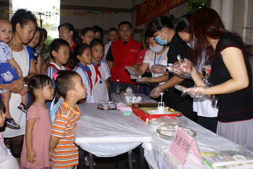 活动主要以游戏的形式进行,为了增进居民亲子间的互动,社工特设置了“小马过河”、“我是小小运动员”等亲子互动游戏。同时,为了让居民感受中秋节日的气氛,继承中国传统习俗,社工设置了“快乐猜猜猜”灯谜游戏。“DIY冰皮月饼制作”使活动达到了高潮,大家都整齐有序的排好队,认真听社工和义工讲解月饼制作方法,耐心的完成月饼的每一步骤,遇到疑惑时主动向社工咨询,直至做好一个完整的月饼。“我看到自己成功做好一个月饼时,特别有成就感,特别开心”居民李小姐感慨到。