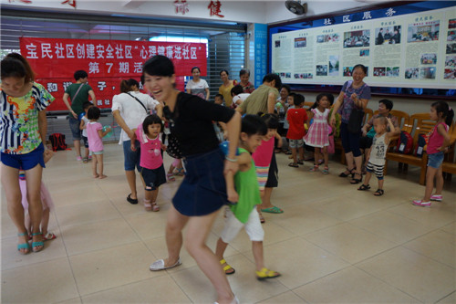 这是宝民社区创建安全社区第七期暨‘和谐亲子,快乐成长’亲子游戏活动。此次活动有三个环节:自我介绍环节、亲子游戏体验环节和游戏感受分享环节。其中,亲子们最喜欢玩的就是游戏体验环节了。每一个游戏都体现了亲子合作的重要性,孩子们在游戏中收获快乐,家长们在游戏中获得智慧。