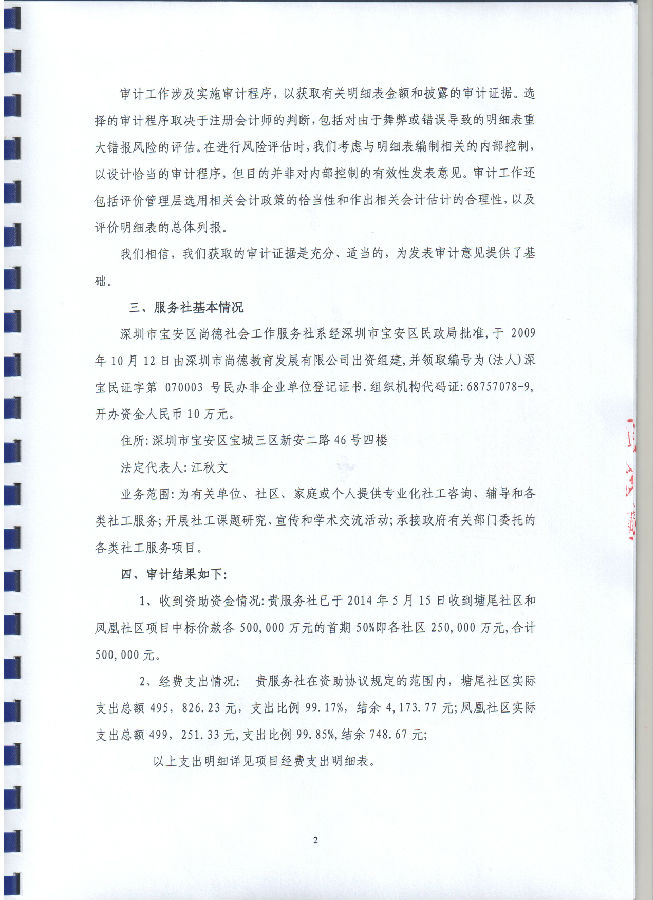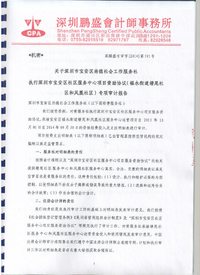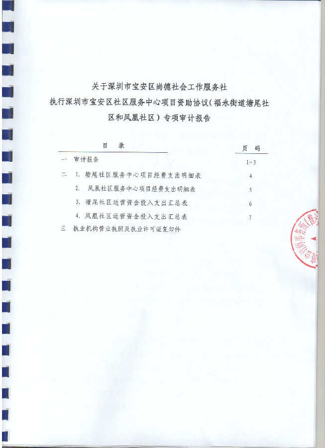 深圳市宝安区社区服务中心项目资助协议(福永街道塘尾社区和凤凰社区)专项审计报告