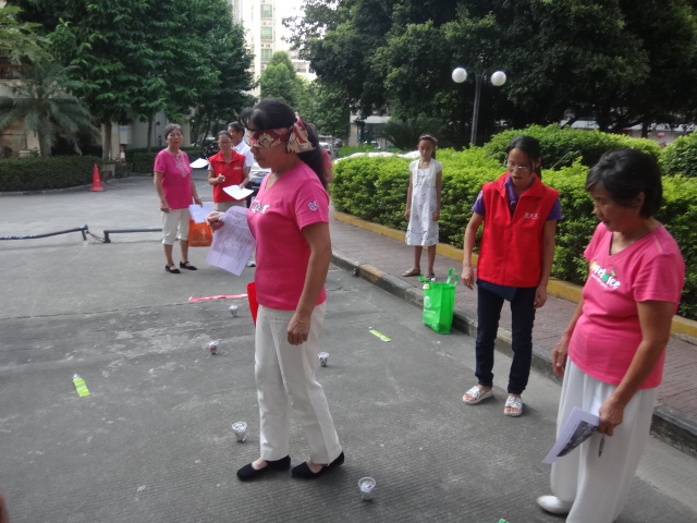 3、文菊莲家庭在玩“投球进宝”游戏