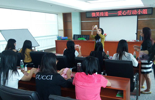 2014年11月13日星期四下午,在松岗街道沙浦围社区活动室微笑传递——爱心行动小组的组员们回顾着整个小组的内容。